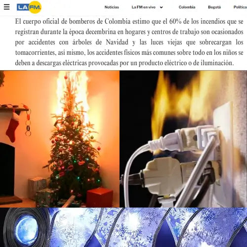 El cuerpo oficial de bomberos de Colombia advierte que el 60 % de incendios en Navidad son por luces viejas o enchufadas.