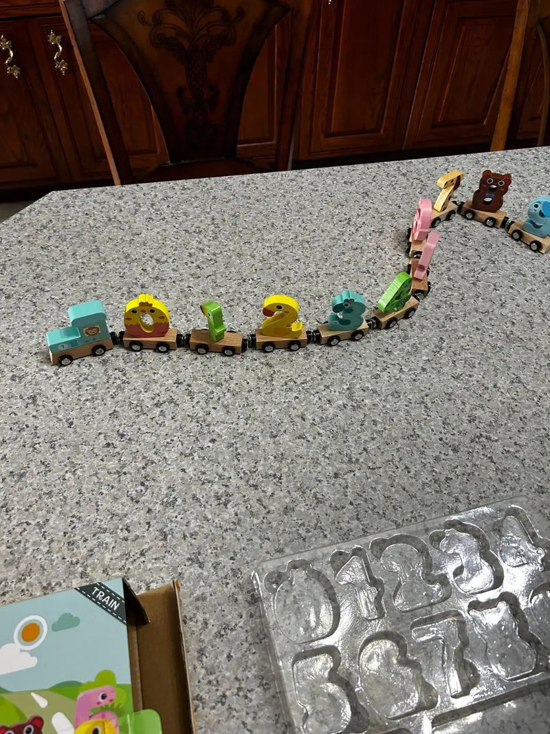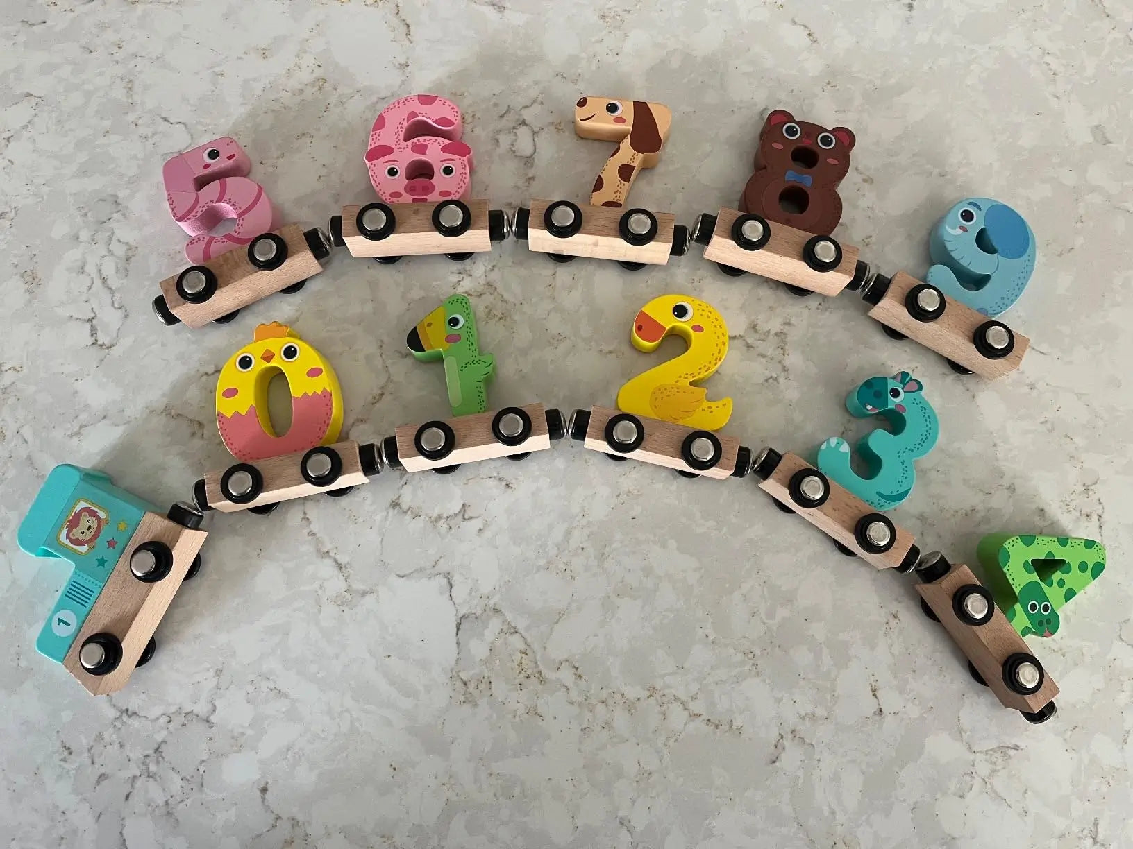 Es un juguete bonito para niños, especialmente cuando están aprendiendo los números. Se mueve con suavidad y es de buena calidad. Los imanes son potentes y pueden jalar sin problema todo el tren armado