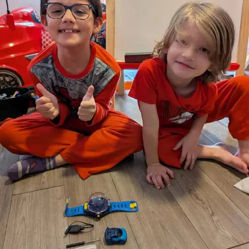 Qué idea tan ingeniosa, un carro de control remoto en un reloj, buena combinación para niños curiosos